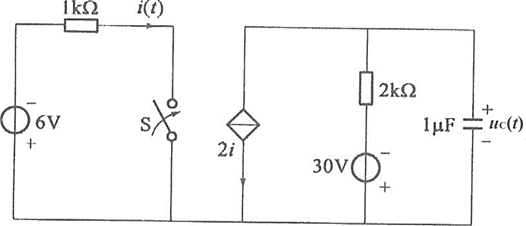 图示电路中,开关S闭合前电路已经处于稳态,当t=0时,S闭合,S闭合后的uC(t)是( )。