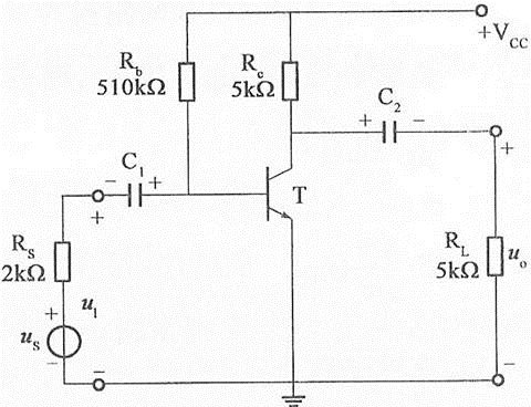 在图示电路VCC=12V,已知晶体管的β=80,rbe=1kΩ,电压放大倍数Au是( )。