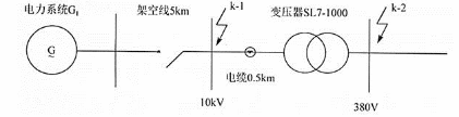 无限大功率电源供电系统如图所示,已知电力系统出口断路器的断流容量为600MVA,架空线路x=0.38Ω/km,用户配电所10kV母线上k-1点短路的三相短路电流周期分量有效值和短路容量为( )。