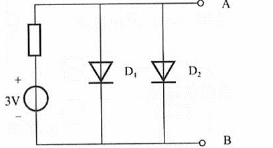 如图所示电路,设D1为硅管,D2为锗管,则AB两端之间的电压UAB为( )。