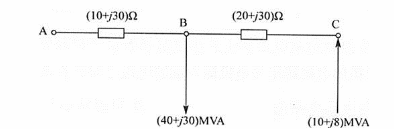 额定电压110kV的辐射型电网各段阻抗及负荷如图所示,已知电源A的电压为121kV,则C点电压(可以不计电压降落的横分量