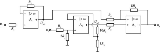 由理想运算放大器组成的电路如图所示,求uo1、uo2、uo的运算关系式分别为( )。