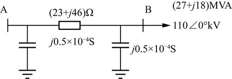 额定电压110k的辐射型电网各段阻抗及负荷如图所示。已知B点功率及电压,则A点的电压及始端功率分别为( )。