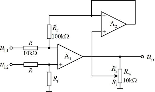 电路如图所示,当RW的滑动端在最上端时,若u11=10mV,u12=20mV,则输出电压uo是( )。