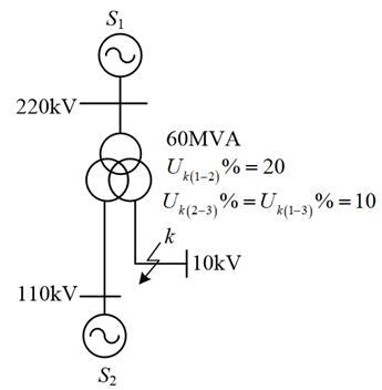 网络如图所示,元件参数示图中,系统S1的短路容量为30MVA,短路电抗Xs1(x)为0.05,系统S2的短路容量为30MVA,短路电抗Xs2(x)为0.05,取SB=60MVA,VB=Vav,当图示k点受这三相短路时,短路点的短路电流为( )。