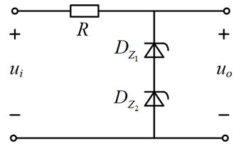 稳压电路如图,ui=18V,Uz1=Uz2=6.3V,正向导通时压降均为0.7V,其输出电压u0为( )。