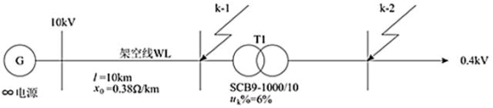 某无穷大电力系统如图所示。k-2点的三相短路电流为( )。