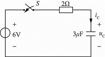 图所示电路中uC(0-)=0,在t=0时闭合开关S后,t=0+时刻的iC(0+)应为下列哪项数值?(  )