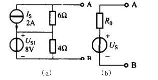 图(a)所示电路的等效电压源电路如图(b)所示,则图(b)中的US和R0的值分别为( )。