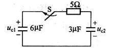 单选题 图所示电路uC1(0-)=0V,uC2(0-)=10V,当t=0时闭合开关S后,uC2应为( )V。以上各式中τ=2μs。
