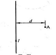真空中有一载流I=500A的无限长直导线(见图),距该导线1m的A点处的磁感应强度B的大小为( )GS。