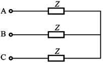图已知三相对称电路的线电压为380V,三相负载消耗的总的有功功率为10kW。负载的功率因数为cosφ=0.6,则负载Z的
