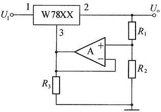 如图所示电路中,A为理想运算放大器,三端集成稳压器的2、3端之间的电压用UREF表示,则电路的输出电压可表示为( )。