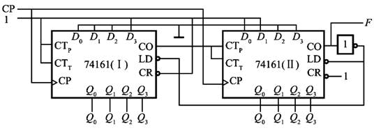 16进制加法计数器74161构成的电路如图所示,74161的功能表如表所示,F为输出,该电路能完成的功能为( )。