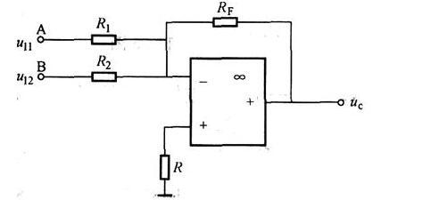 电路如图所示,R1=10kΩ,R2=20kΩ,RF=100kΩ,u11=0.2V,u12=-0.5V,则输出电压uo为(