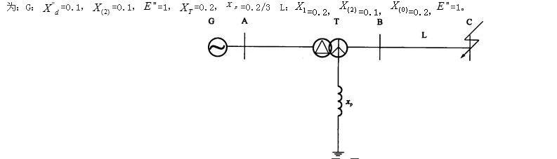 单选题 系统如图所示,母线C发生a相接地短路时,短路点短路电流和发电机A母线a相电压标幺值分别为( )。变压器绕组为YN