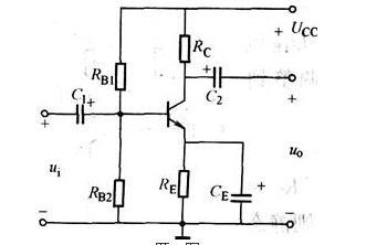 电路如图所示,若发射极交流旁路电容CE因介质失效而导致电容值近似为零,此时电路( )。