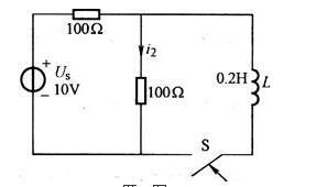 在图所示电路中,开关S在t=0瞬间闭合,则i2(0+)=( )A。