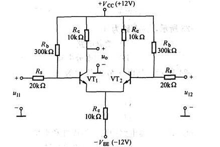 差分放大电路如图所示,若晶体管VT1、VT2的参数对称,β均为50,rbe均为2.6kΩ。则差模电压放大倍数Aud约为(