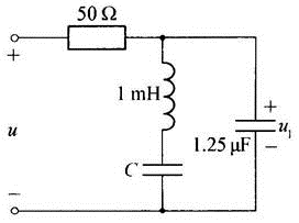 如图所示,电路电压含有基波和三次谐波,基波角频率为10^4rad/s。若要求u1中不含基波分量而将u中的三次谐波分量全部取出,则C的值等于(  )。
