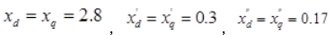 一台额定功率为200MW的汽轮发电机,额定电压10.5kV,cosφN=0.85,其有关电抗标幺值为(参数为以发电机额定容量为基准的标幺值),发电机在额定电压下空载运行时端部突然三相短路,Ik"为(  )。