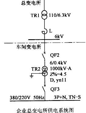 单项选择题 某企业总变电所设计中,安装有变压器TR1及电抗器L,并从总变电所6kV母线引一回路向车间变电所供电,供电系统