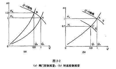 不定项选择题 图2-2分别表示一台向某水处理厂水池专管送水的水泵用阀门控制流量和用水泵转 速控制流量的理论特性曲线。考虑水泵的功率、流量、扬程符合P=HQ关系,回答以下 问题。