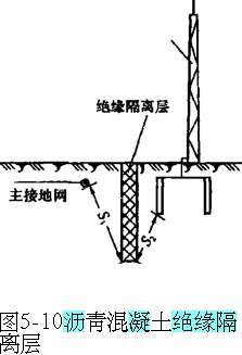 如图5-10所示,由于布置上的原因,变电所独立避 雷针接地装置与其主接地网之间的距离不能满足要求,拟采 用沥青混凝土作绝缘隔离层,若该绝缘隔离层的厚度为 0. 2m (图5-10中的b),隔离层边缘至主接地网的最小距离 S1=1. 8m,隔离层边缘至避雷针接地体的最小距离应不小于 ( ).
