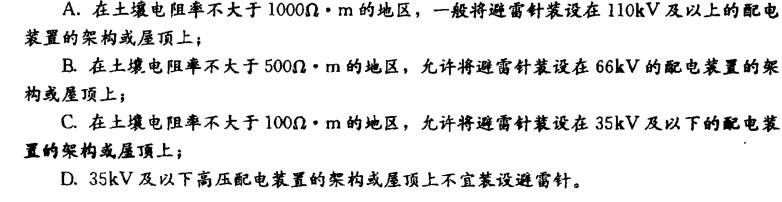 多项选择题 在配电装置的架构或屋顶上装设避雷针的条件是()。