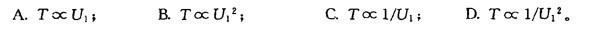 单项选择题 异步电动机采用定子电压调速时,当转差率s—定,电磁转矩T与定子电压U1的 关系符合( )。