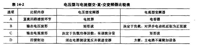 单项选择题 在下列电压型与电流型交-直-交变频器主要特点比较见表14-2,错误的是( )。