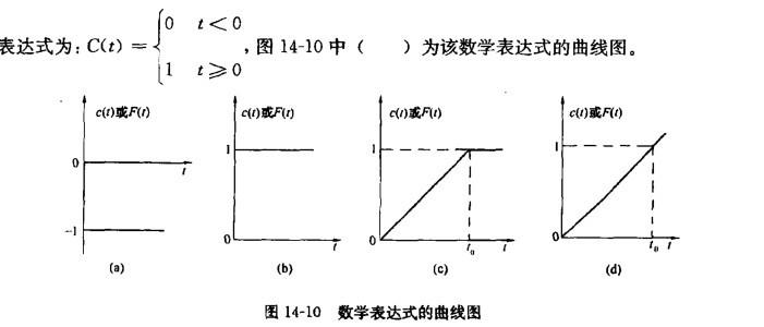 单项选择题 以下四种曲线是电气传动系统中常见的控制、扰动信号曲线:某控制信号的数学 A.图 14-10 (a); B.图