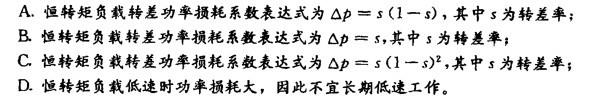 多项选择题 交流电动机定子调压调速是一种低效调速系统,转差率加大,产生大量转差功率损 耗.以下对定子调压调速用于恒转矩负载的功率损耗分析,正确的是( )。