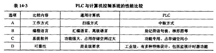 多项选择题 PLC与计算机控制系统的性能比较见表14-3,正确的是(〉.
