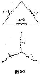 单选题 网络化简和归并是短路电流计算的必须步骤,图5-2变化后的x'1、x'2、x'3值为()。
