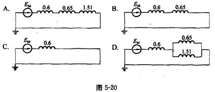 单选题 220kV线路(如图5-19所示)K点发生三相短路。电源、线路电抗标么值已注明在图中,额定电压为220kV,基准