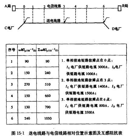 单选题 送电线路与电信线路相对位置示意图及互感阻抗表如图15-1所示:请计算磁感应纵电动势(电磁综合屏蔽系数K 50=1