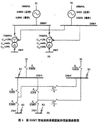 单选题 某500kV变电站已知系统阻抗和变压器参数如图4所示,站址位于一块荒地上,围墙外面有水塘。