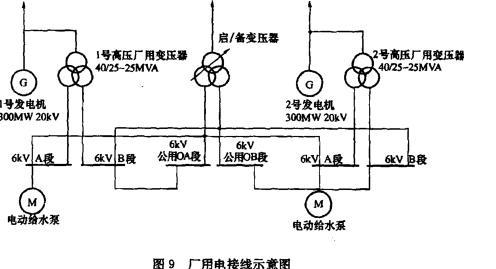 单选题 某2X300MW火力发电厂厂用电系统采用6kV和380V两级电压,其中每台机组设A、B两段6kV工作段,全厂设01A、OlB两段6kV公用段,考虑公用段工作电源取自1、2号机组6kV工作段,备用电源取自启动/备用变压器。见示意图9。每台机组设一台电动给水泵,都接于机组6kV工作A段,髙压厂用分裂变压器容量为:40/25—25MVA(无载调压)。