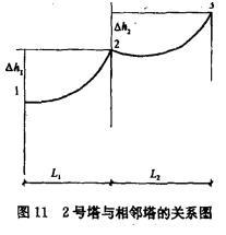 假设风速V=25m/s,覆冰b= 10mm,采用双分裂LGJ—300/40导线,2号塔与相邻塔的关系如图11所示。