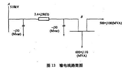 单选题 有一额定电压为500kV的输电网,已知500kV输电线路使用4XLGJQ-300型分裂导线,长度为100km。其电气参数电阻R=2.4Ω、电抗X=28Ω、充电功率Q=1OOMvar如图13所示。
