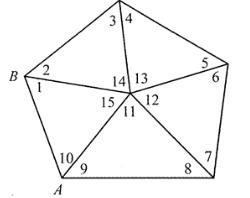 某三角网如图所示,其中A、B是已知点,其他为待定点。ai、bi、ci,(i=1,2,3)为观测角,则该图形能列出的条件方程数量是( )个。