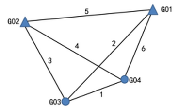 某大地控制网如图所示,共G01、G02、G03、G04四个控制点,其中,G01、G02为已知点,其他为待定点,共观测6个