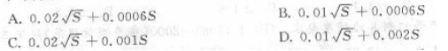 单选题 现行《房产测量规范》规定,一级精度房产面积测算限差的计算公式为(),其中s为房产面积。