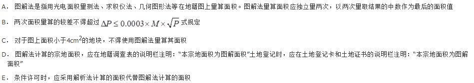 多选题 现行《地籍测绘规范》规定:面积量算的方法有坐标解析法、实地量距法和图解法。关于图解法下列说法正确的是( )。