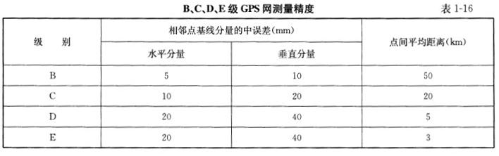 b.GPS测量精度。 B、C、D、E级GPS网测量精度见表1-16 。