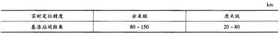区域基准站网的布设按实时定位服务精度的不同选择基准站间距离。具体要求按下表规定。
