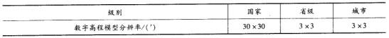 ⑤所采用的数字高程模型分辨率应不低于下表的规定。