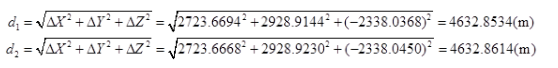 d=(d1+d2)/2=(4632.8534+4632.8614)/2=4632.8574(m)