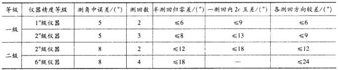 ⑤方格网的水平角观测可采用方向观测法,其主要技术要求应符合下表的规定。